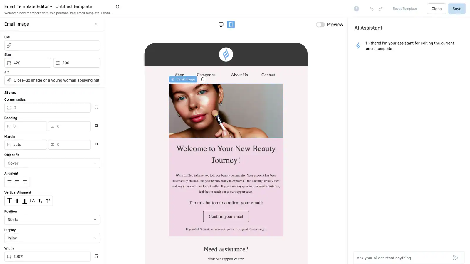 Sync products, store coupons, and generate AI image variants so campaigns assemble themselves.