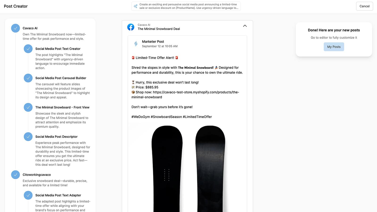 Create your account and watch Cavaco build, personalize, and schedule your first campaign in minutes.