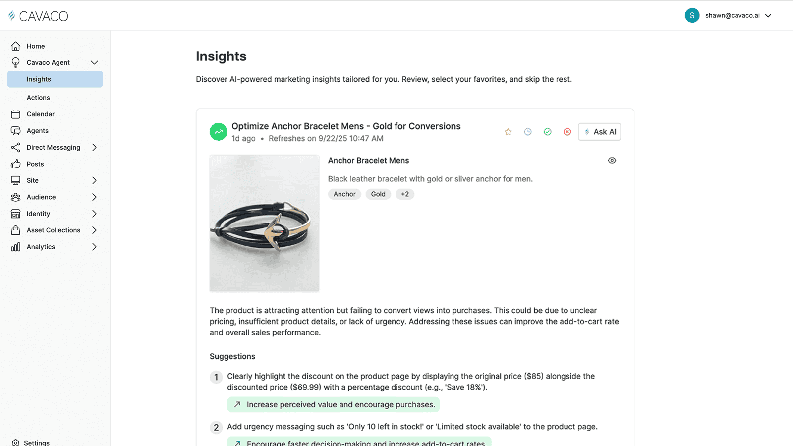 Cavaco AI (kah-VAH-ko) is an all-in-one, AI-native marketing engine that plans, builds, and optimizes every customer touchpoint to help you scale without adding headcount.
